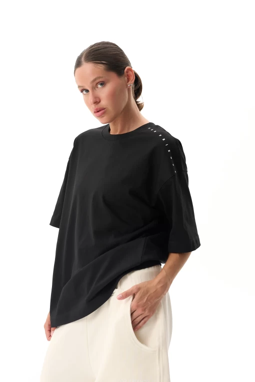 Футболка FOR FRIENDS Long жіноча чорного кольору.