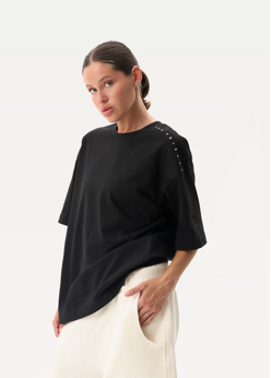 Футболка FOR FRIENDS Long жіноча чорного кольору.