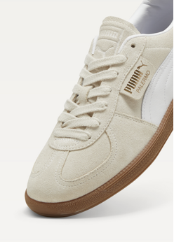 Легенда терас із наших архівів повертається: Palermo. Цей силует дебютував ще на початку 80-х, де швидко став основним продуктом серед натовпу на терасах британських футбольних стадіонів. Тепер ми повернули його фанам. Як і оригінал, Palermo доповнений фірмовою биркою на верху, Т-подібною конструкцією та, звичайно ж, класичною гумовою підошвою. Ця версія має замшеву основу та шкіряну смужку з логотипом PUMA, надрукованим фольгою.