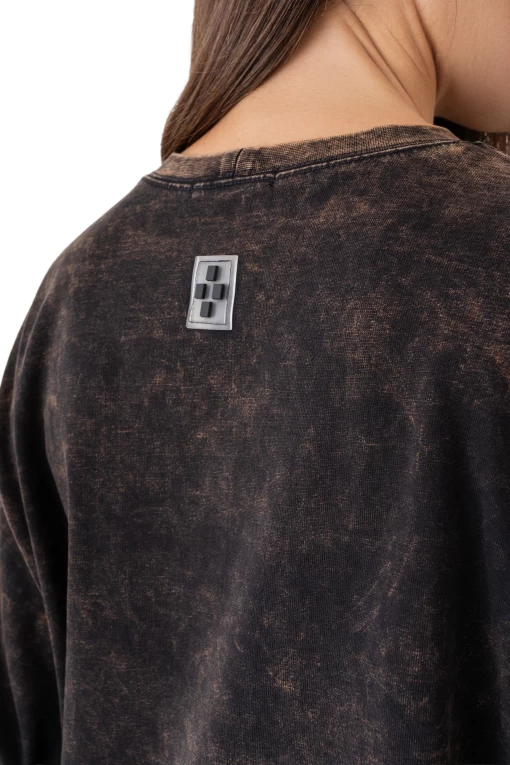 Виварений оверсайс-лонгслів прямого крою зі спущеної лінією плечей та подовженими рукавами. Виріб оздоблено брендовим патчем-логотипом на рукаві.