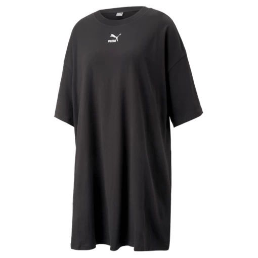 Классика - это PUMA в самом лаконичном исполнении. Платье-футболка со свободной посадкой, объемными рукавами и тканью черного цвета, идеально подходит на каждый день.