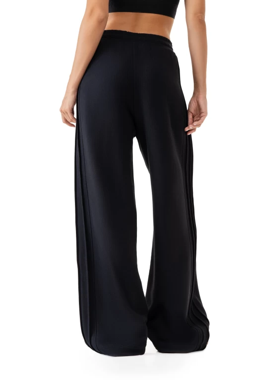 Элегантные штаны прямого кроя с акцентными четырьмя строчками-полосками по бокам изделия. Функциональные карманы спереди. Удобный пояс на резинке.