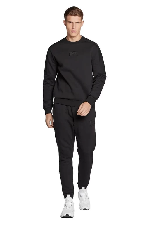 Практичный и универсальный костюм EA7 Emporio Armani из хлопка, разработанный для обеспечения максимального комфорта как в моменты отдыха, так и во время тренировок. Состоящий из толстовки с круглым вырезом и брюк-джоггеров с кулиской, он отличается индивидуальной отделкой с контрастным логотипом, который украшает оба предмета одежды.