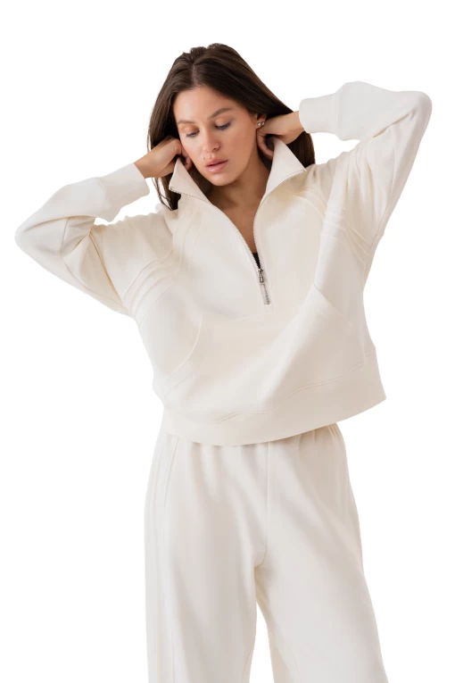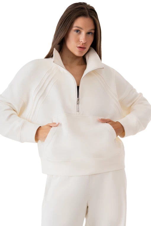 Свитшот на молнии женский FRND FOR FRIENDS Quest молочного цвета.