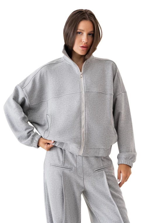 Свитшот на молнии женский FOR FRIENDS Stage цвета светло-серый меланж.