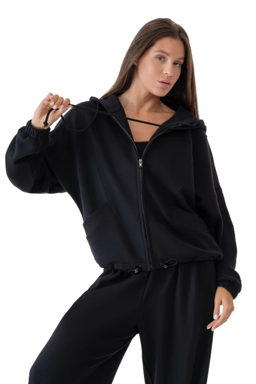 Худи на молнии женское FRND FOR FRIENDS Shape черного цвета.