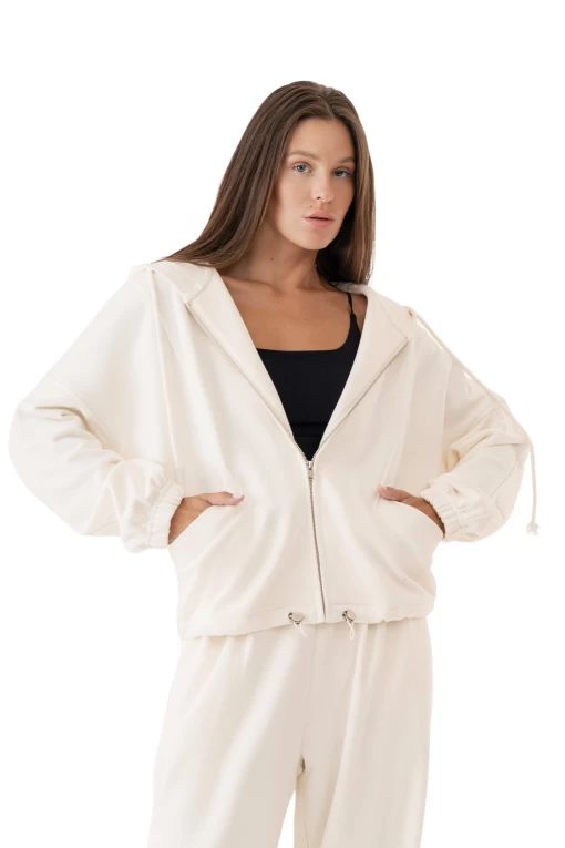 Худи на молнии женское FRND FOR FRIENDS Shape молочного цвета.