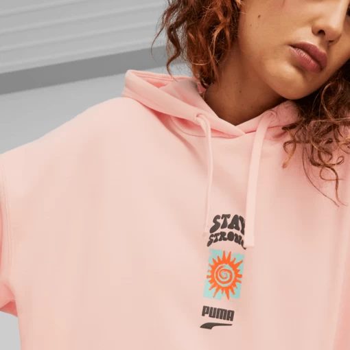 Світи вулиць, скейтбордингу та сталого розвитку поєднуються в колекції Downtown, а це худі з капюшоном відрізняється вільним кроєм та графікою: воно ідеально підходить для катання на ковзанах або прогулянок.